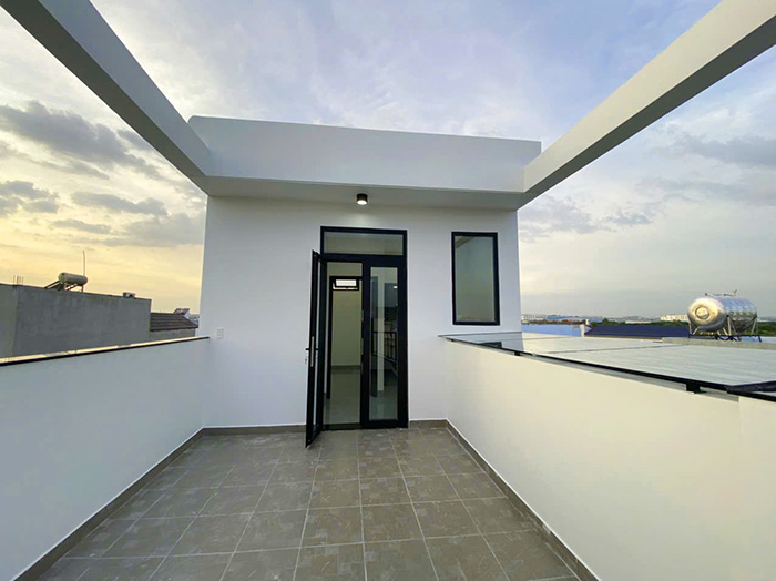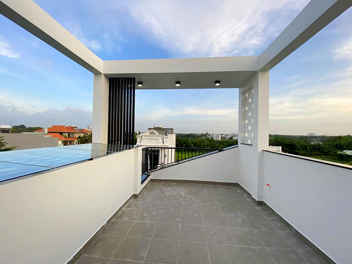 - Sân thượng được thiết kế rộng rãi với sàn gạch chống trơn trượt. Đây là không gian đa năng cho chủ đầu tư: từ việc trồng cây cảnh, tổ chức những bữa tiệc bbq ngoài trời, đến việc lắp đặt hệ thống năng lượng mặt trời giúp tiết kiệm điện năng.