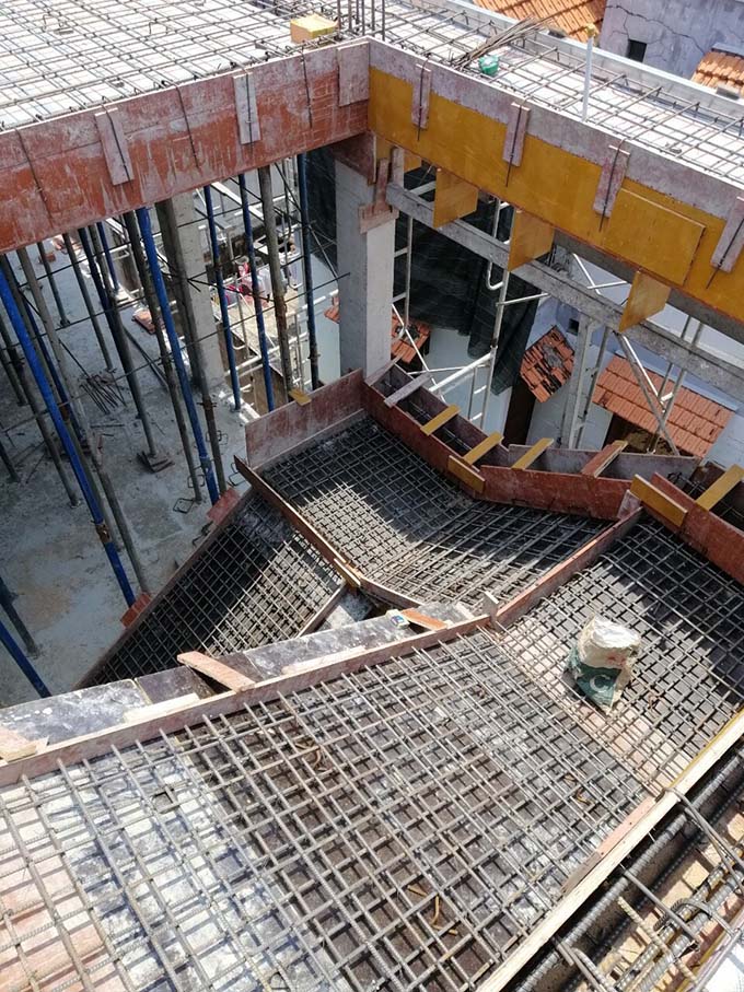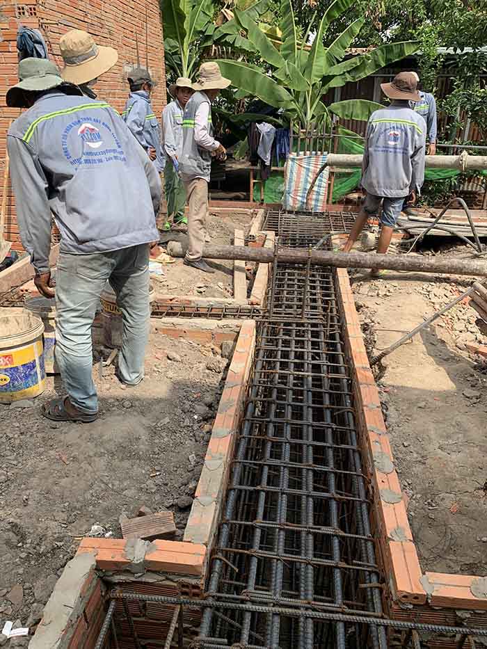 • Thi công móng, kết cấu chịu lực, tường, sàn, mái, hệ thống điện, nước âm tường.
