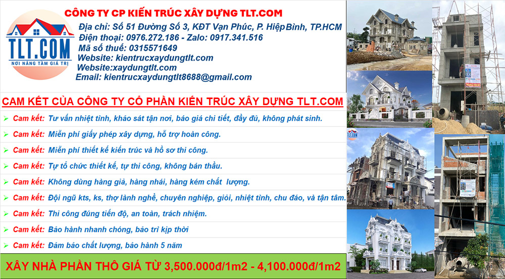 Công ty Xây Dựng TLT.COM chuyên cung cấp dịch vụ xây nhà phần thô và nhân công trọn gói chỉ từ 3.000.000đ/m2 tiết kiệm 20% chi phí xây dựng. Xây nhà phần thô cam kết đúng tiến độ, vật tư đúng thỏa thuận, không bán thầu, không phát sinh chi phí, đội ngũ thợ lành nghề, miễn phí thiết kế kiến trúc và GPXD 100%.