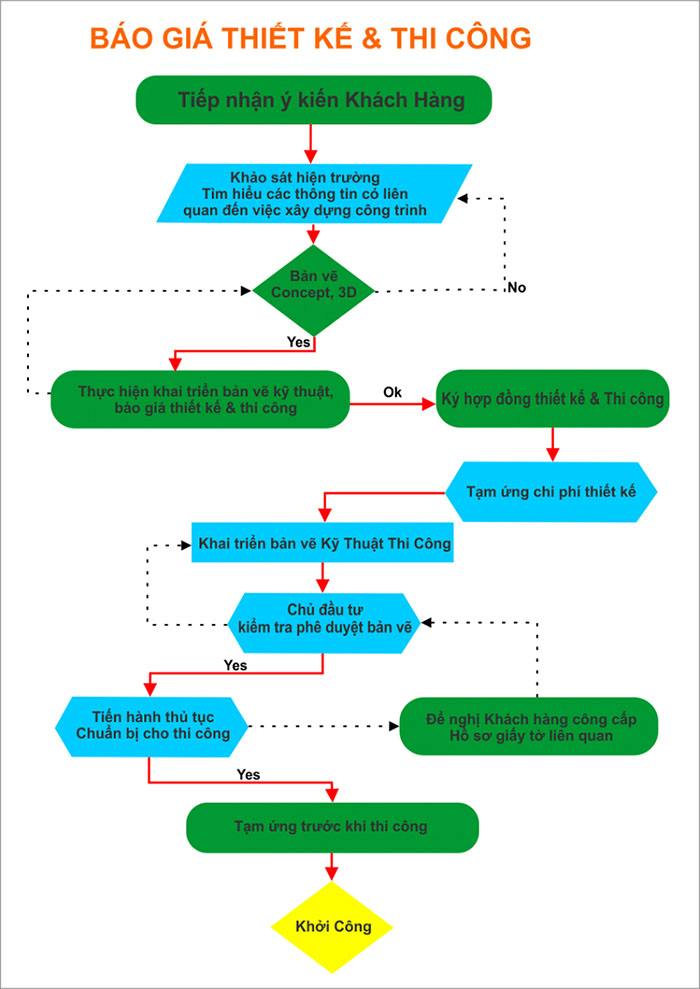 • Quy trình làm việc rõ ràng, từ tư vấn, khảo sát, thiết kế đến thi công và bàn giao.