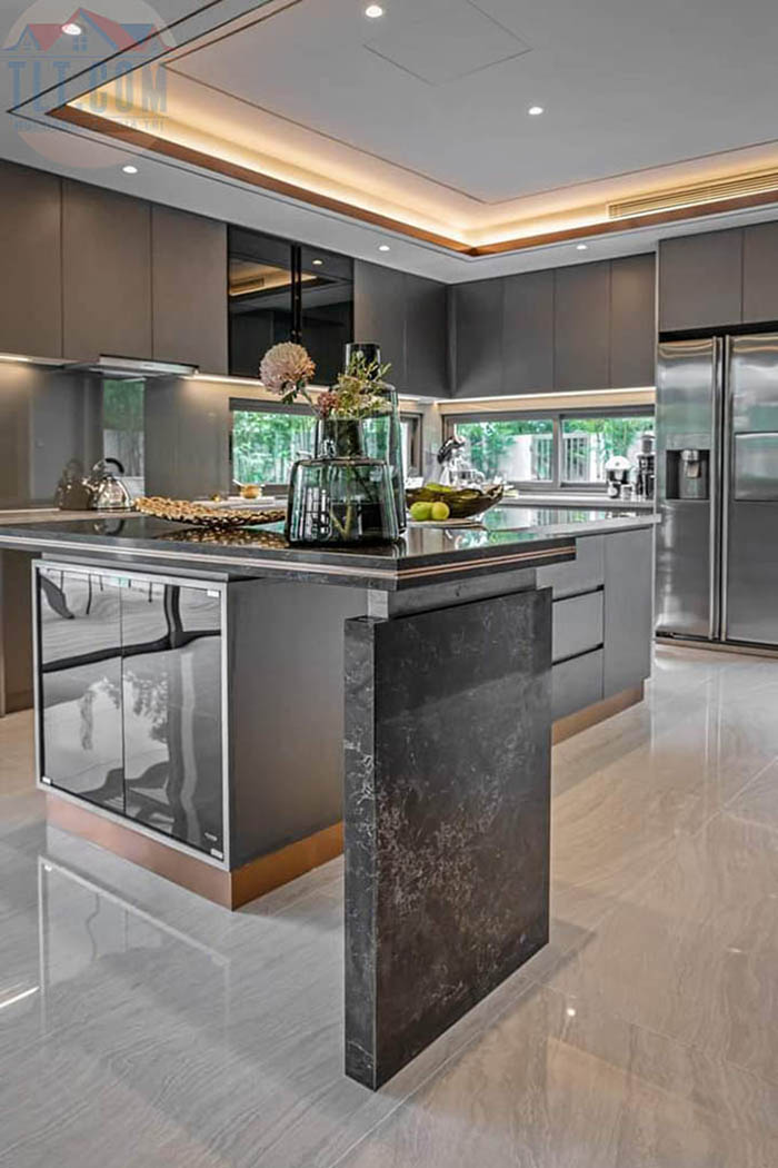 - Lắp đặt bồn rửa chén, vòi nước khu bếp.