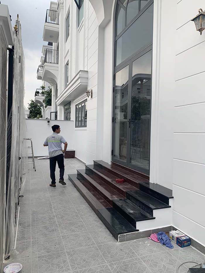 - Thi công lắp đặt hệ thống cầu thang, cửa đi và lan can.