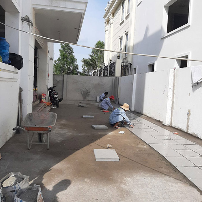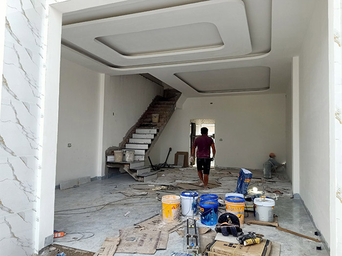 - Lắp đặt gạch, hoàn thiện sơn nước và thi công trần thạch cao.