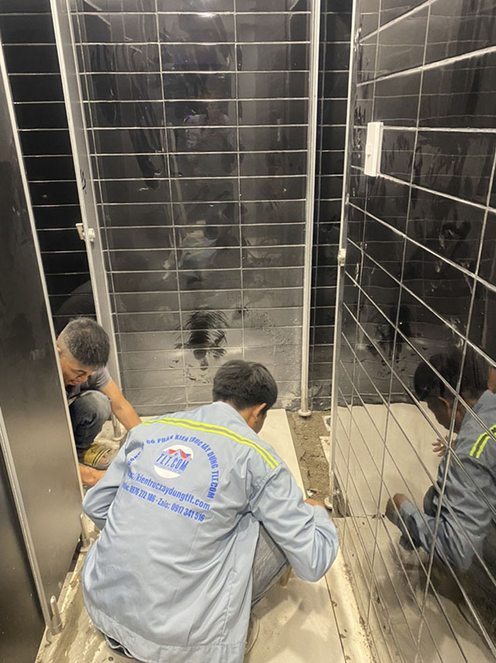 - Thi công điện, nước và lắp đặt thiết bị nhà vệ sinh.