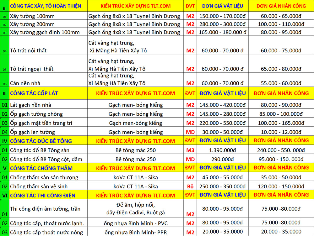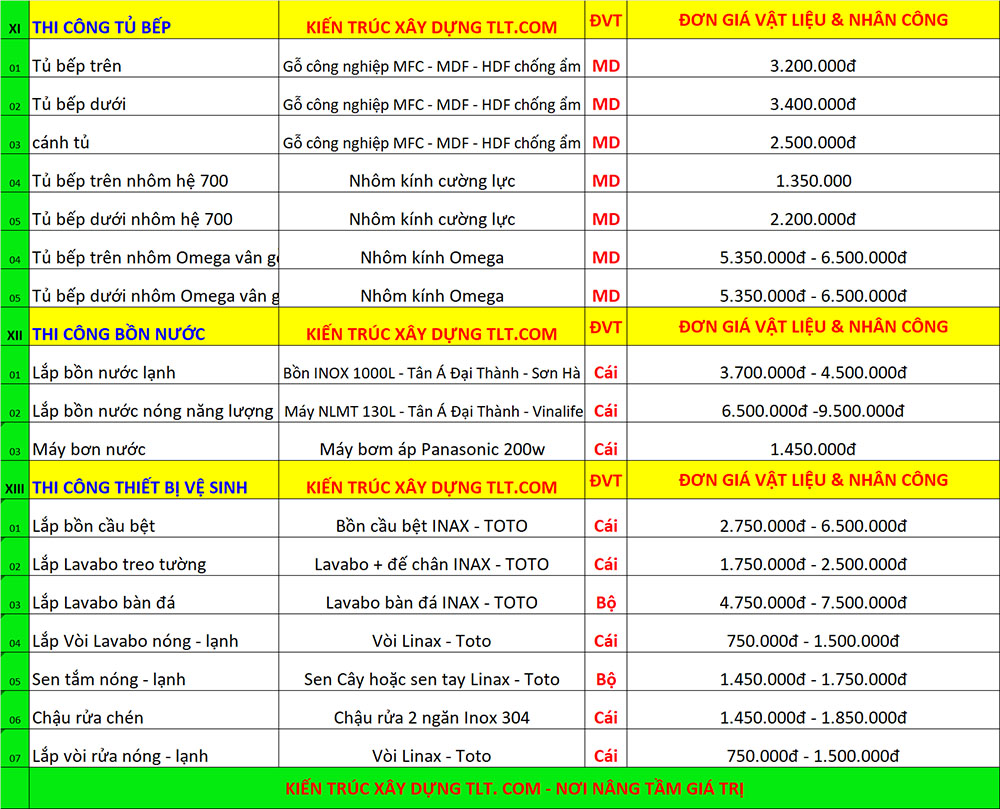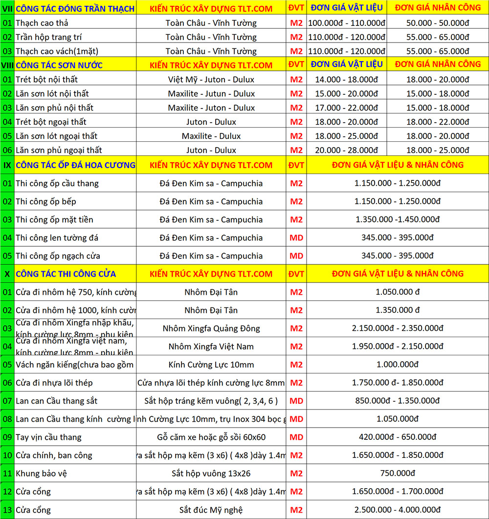 Dưới đây là bảng đơn giá sửa chữa cải tạo nhà trọn gói tại Thủ Đức theo từng hạng mục công việc chi tiết, mời quý vị tham khảo.