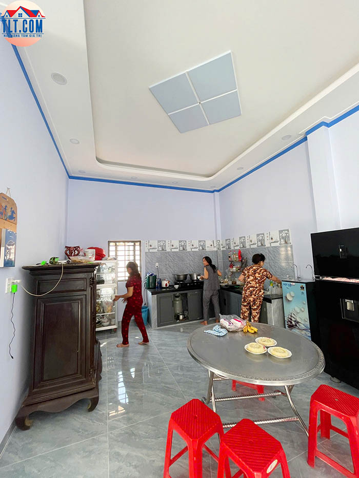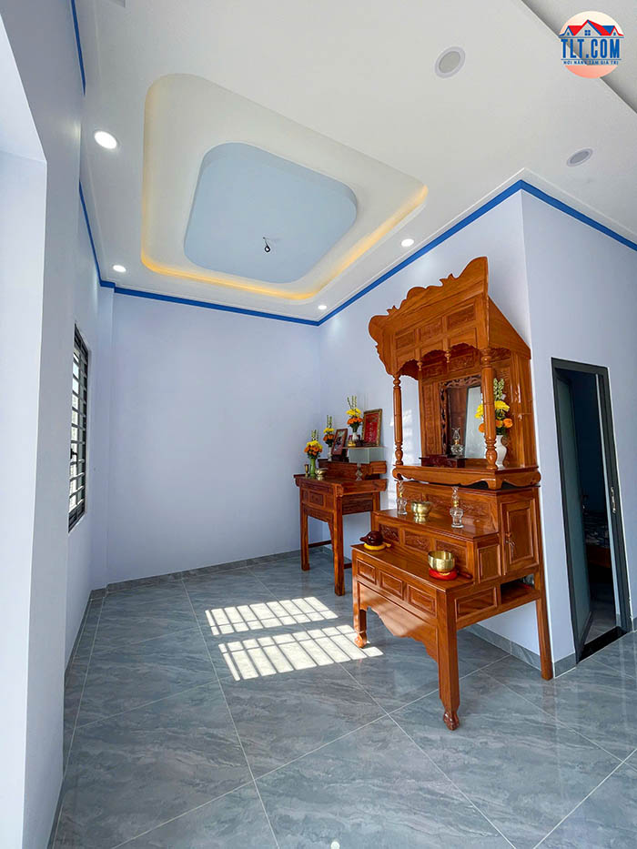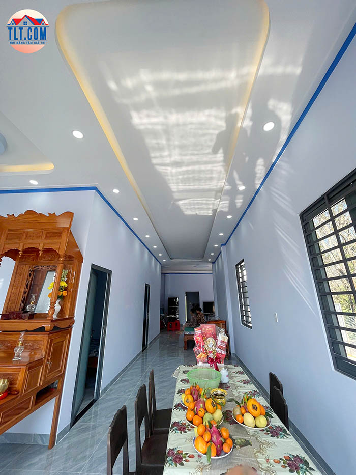 • Nội thất tối ưu: trần thạch cao giật cấp kết hợp hệ thống đèn led âm trần mang lại không gian ấm cúng và hiện đại.