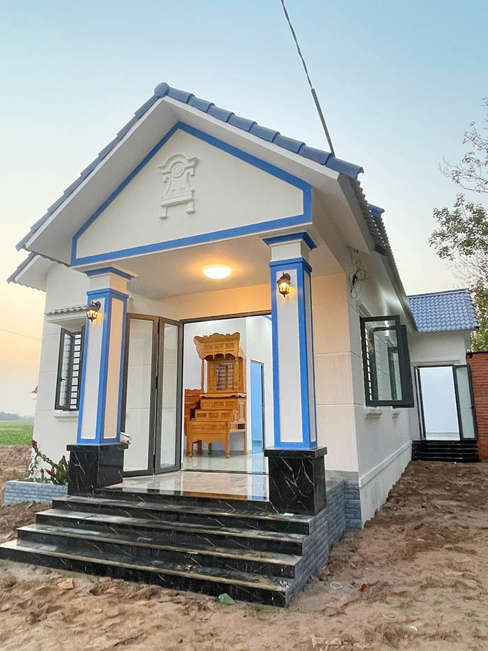 Căn nhà tại Châu Thành nổi bật với phong cách kiến trúc mái thái hiện đại, tối ưu hóa công năng trên một mặt sàn nhưng vẫn toát lên vẻ bề thế:
