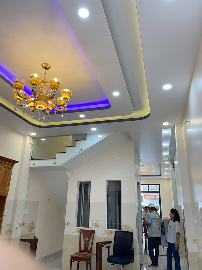 - Hoàn thiện: Tô trát, ốp lát, sơn bả, đóng trần thạch cao. Lắp đặt cửa, cầu thang, hệ thống điện nước, thiết bị vệ sinh và nội thất theo thiết kế. Vệ sinh tổng thể, nghiệm thu và bàn giao công trình cho khách hàng.